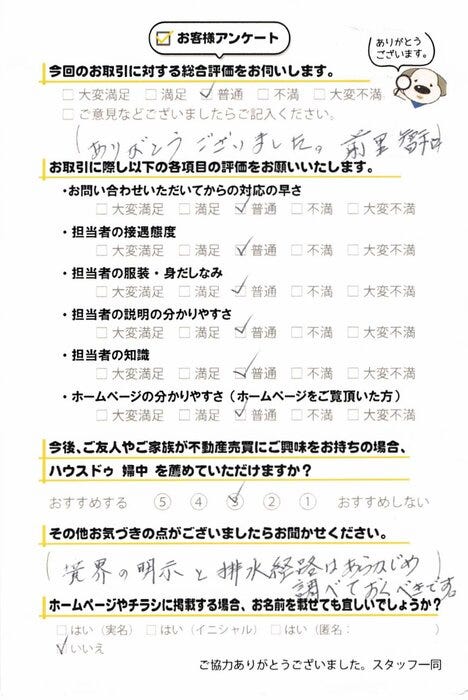 境界の明示と排水経路はあらかじめ調べておくべきです。